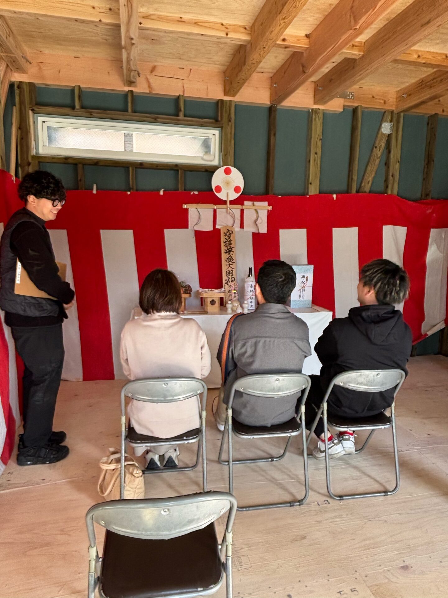 本日の式典では、これまで無事に工程が進んでこられたことへの感謝と、これからの工事が最後まで安全に進むこと、そして何より、Y様ご一家の末永いご繁栄をスタッフ一同心を込めて祈願いたしました。