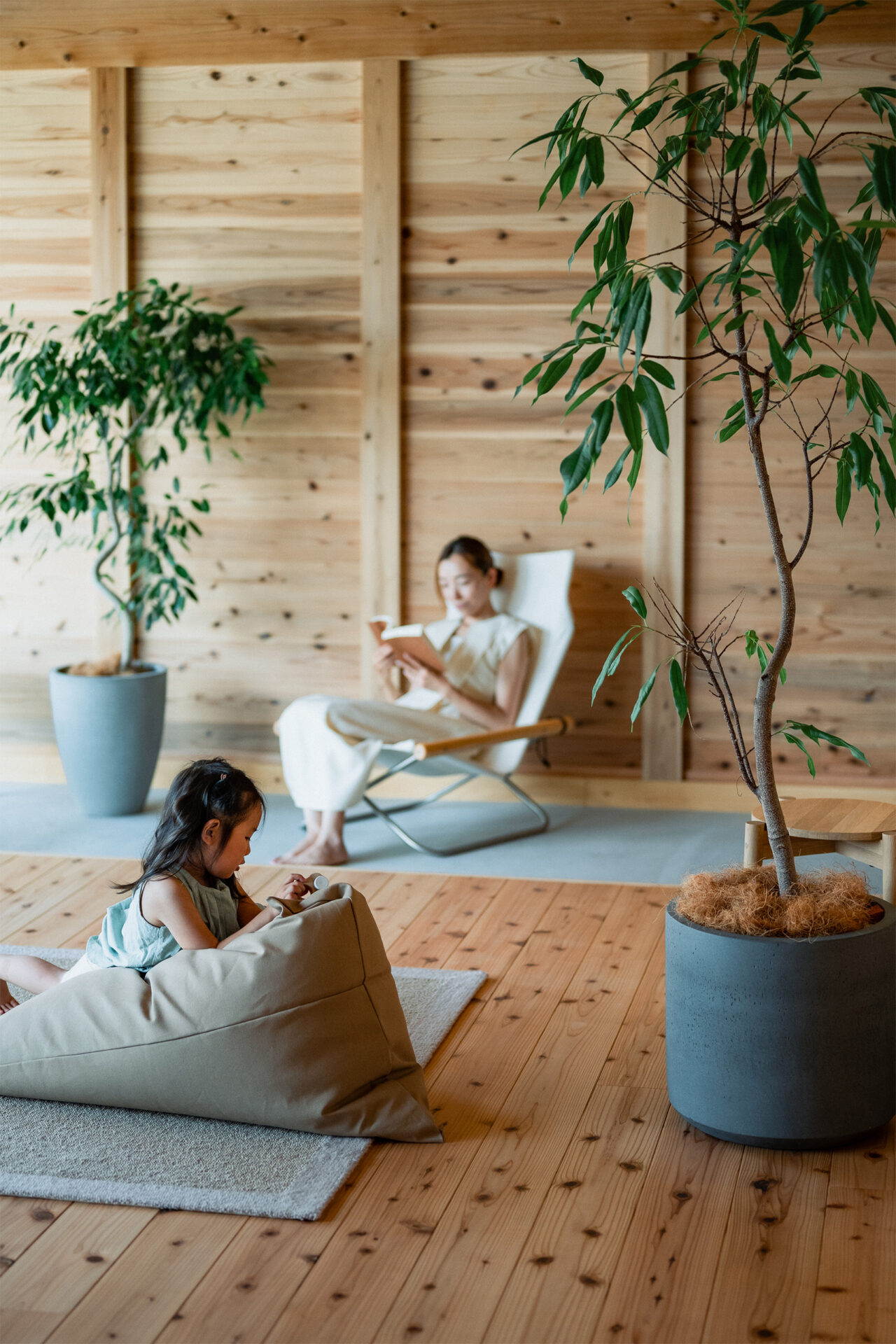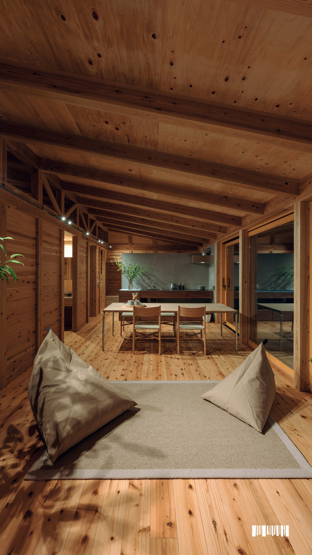 木をふんだんに使った家は、経年劣化を楽しみながら、住む人がカスタマイズできる温かみのある空間を提供します。