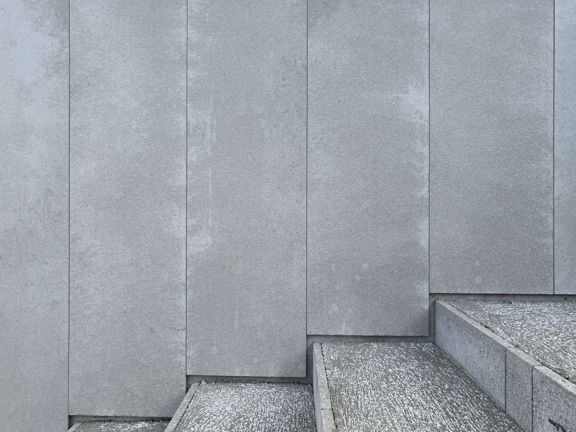 下部に使用しているセメント素材の外壁は、1枚として同じ模様がない無垢の素材感と重厚感が特徴となっています。