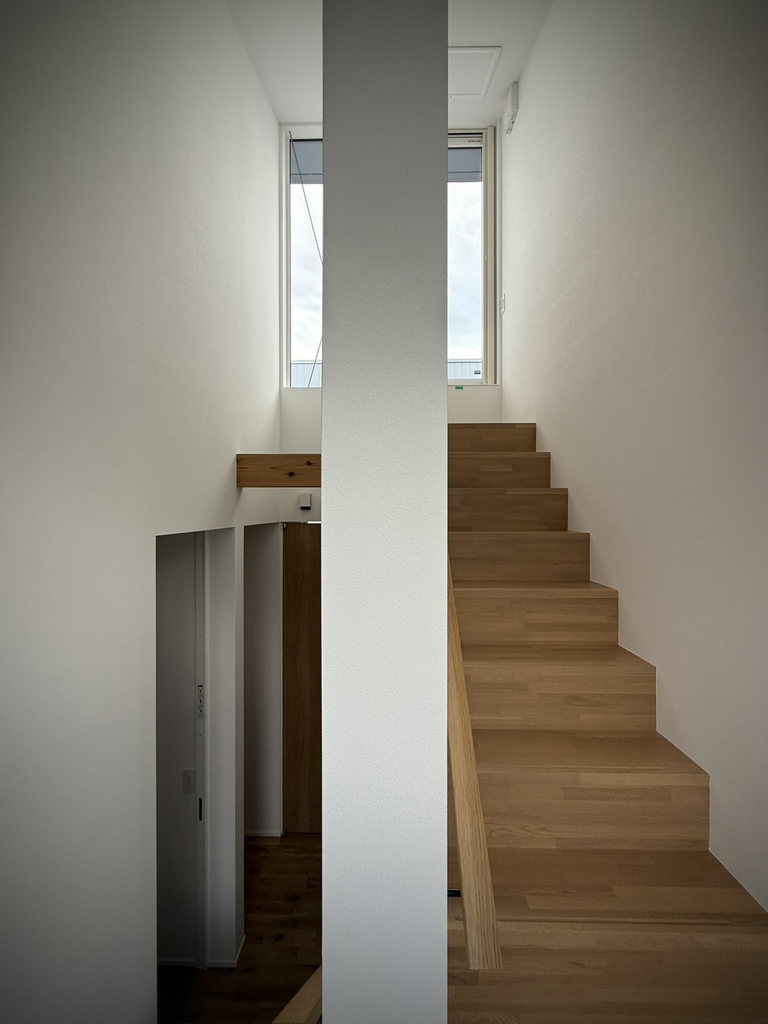 階段吹き抜けの窓から落ちる陽の光は、空間に美しい陰影をもらたします。