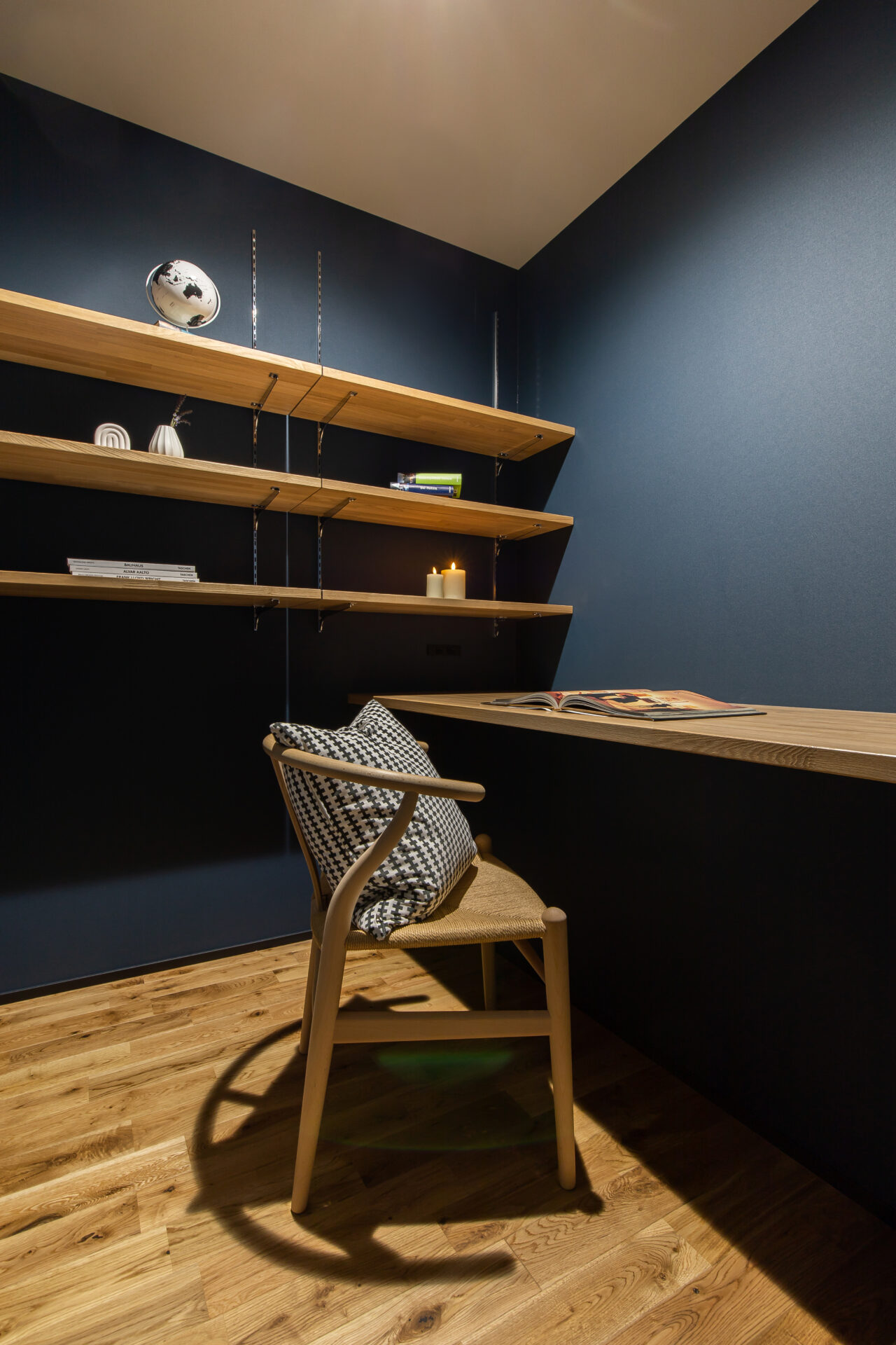 趣味にも仕事にも集中できる、プライベートな書斎スペース。