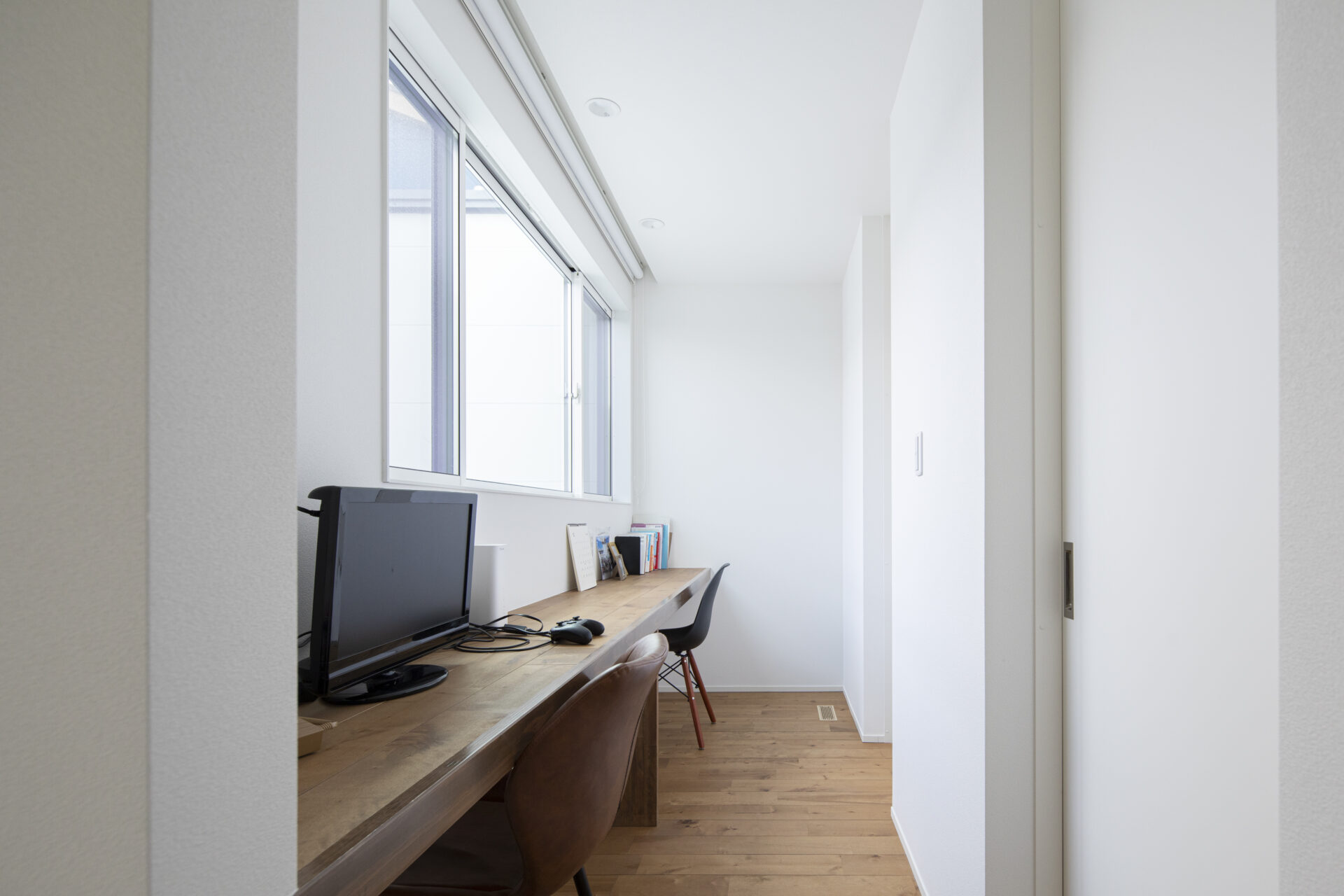集中できる適度なこもり感と、家族の気配を感じられる安心感を両立。