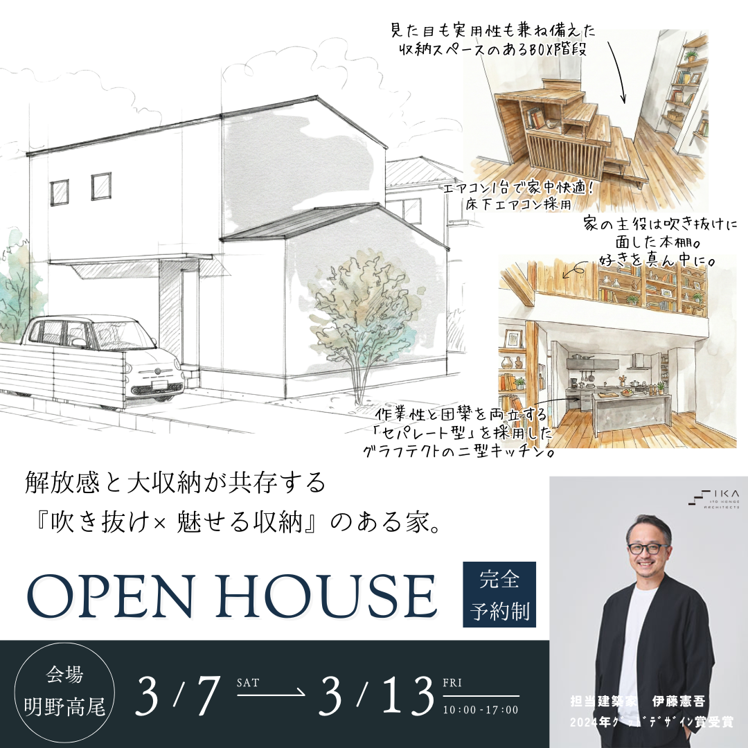 同時開催として新築完成見学会を開催しております。グッドデザイン賞受賞建築家の伊藤憲吾さんの設計による新築物件です!