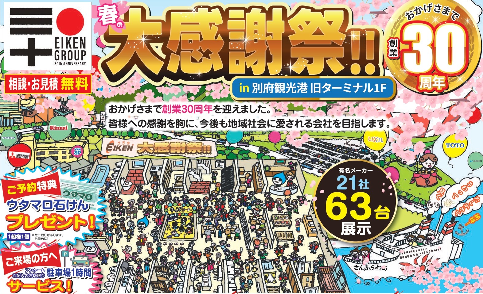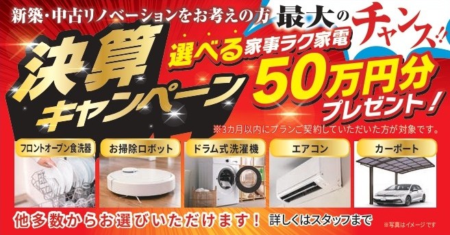 榮建トータル・ハウジング、榮建リフォームシステムでは、日ごろの感謝の気持ちを込めて「住まいと暮らしの大感謝祭」を開催いたします!
