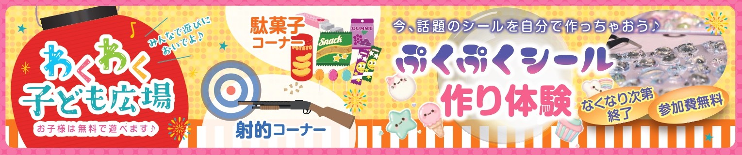 わくわく子供広場では、お子様が無料で楽しめるイベントが盛りだくさん☆