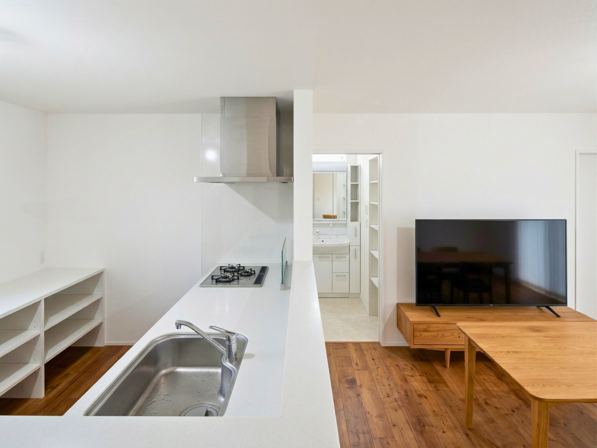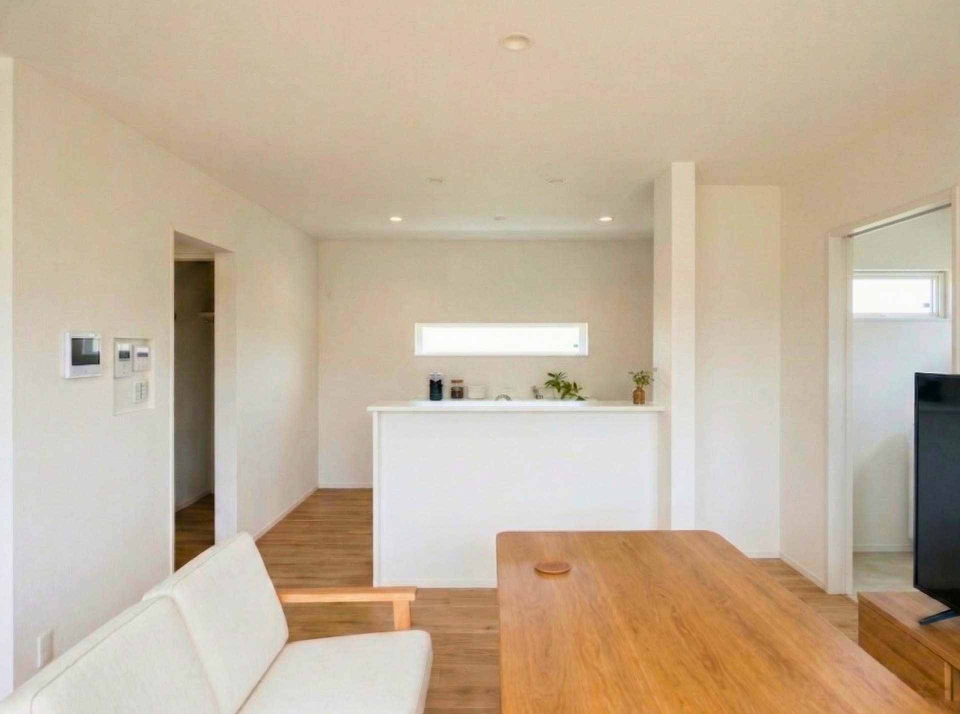短い家事動線と互いの気配を感じる安心感、ピクチャーウィンドウによる16坪とは思えない開放感を両立した上質な居心地です。